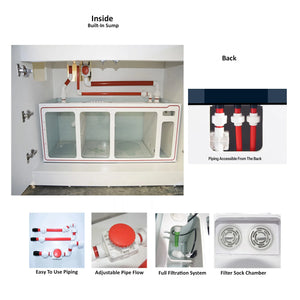 - CORAL SUMP: Your aquarium arrives with a sump system perfect for optimally filtering your coral reef tank. The system includes a filter sock unit, a protein skimmer/general-use section, a top-off reservoir, a section fit for your own choosing, and a return pump section.