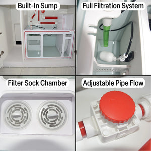- CORAL SUMP: Your aquarium arrives with a sump system perfect for optimally filtering your coral reef tank. The system includes a filter sock unit, a protein skimmer/general-use section, a top-off reservoir, a section fit for your own choosing, and a return pump section.