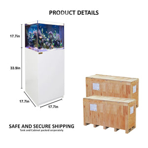 - INCLUDED IN PURCHASE: Your all-in-one purchase ships complete with one 24-gallon tank, one prebuilt and fully assembled matte finish cabinet, one built-in 13-gallon sump-filtration system, and easy to install pipes for your aquarium plumbing.
