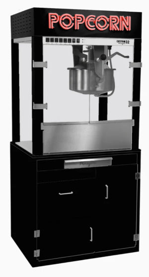 of use. The 32 oz model is capable of popping up to 640 oz per hour. Perfect for bustling venues! Its programmable LED neon sign helps attract attention, while the forced air conditioner ensures optimal heat control for consistently delicious popcorn.