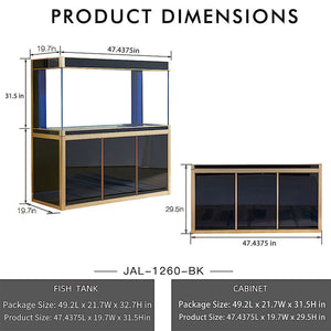 - With this sleek look of Black and Gold, every detail reflects the modern design concept. and you can clearly see each aquatic plant. The pet fish swims gracefully in front of you. A better immersive experience. Give your pet water creatures a hide-and-relax luxury home. Product weight: 293lb. Water Total Actual Capacity: 130 Gallons.