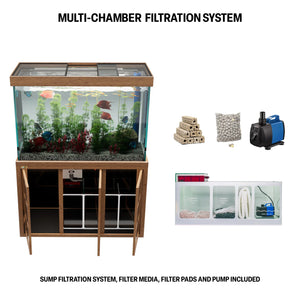 The premium aluminum frame prevents deformation and fading, and also comes with a tri-color LED-equipped cover. The cabinet frame is also resistant to tension and torque deformation which can be caused by heavy loads as well as being corrosion resistant. The cabinet houses the sump filtration system, which will include all pieces needed for installation, as well as a submersible aquatic pump. The sump filtration system includes a wet-dry filtration system as well as designated filter media dividers. This will allow for a modular approach when handling the filter media of your choice.