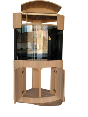 Aqua Vim Corner 1/4 Cylinder Glass Aquarium Set in Flush Unstained Wood Furniture