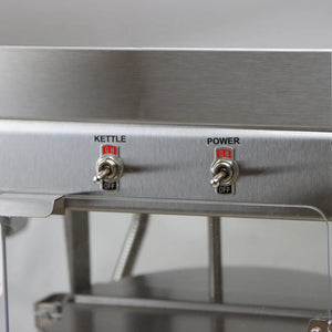 Styled with an industrial, all stainless-steel contemporary flair, the full featured machine pops delicious, theater-quality popcorn in 3-5 minutes, is easy to use and easy to maintain. This popcorn machine creates 147 one-ounce servings per hour for maximum output, and its spring-assisted kettle makes it easy to unload popcorn when it's done cooking. Its two-switch operation powers the machine, the lights and heat the kettle with two simple clicks. The aerated warming deck keeps your food warm while catching kernels and smaller bits for easy cleaning.