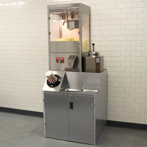 Model #3070180 (sold separately) is an integration stand that is designed specifically for the self-serve popper incorporation both form and function. The popper and stand can be paired with a butter warmer to further expand the self-service offering.