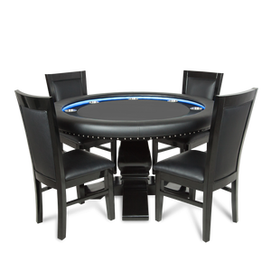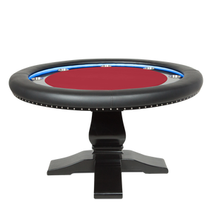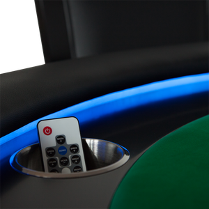 The remote-controlled LED lights give the table a great feel, while the round table shape comfortably accommodates up to 8 players. The Ginza fits in a comparatively smaller footprint than a long oval table requires. The Ginza is also well-suited for games where the deal rotates and with intimate play where everyone is an equally short distance from the pot.