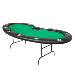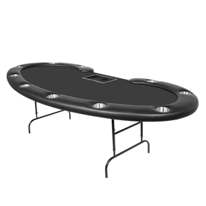 Get ready to dominate the poker world with the Prestige Poker Table with SAH folding legs. Measuring 108in, this stunning kidney bean-shaped table exudes luxury and elevates your gaming experience. Hosting 10 players and a dedicated dealer, it's perfect for intense showdowns. Impeccably crafted with sleek curves and a high-end design, the Prestige creates an atmosphere reminiscent of a high-stakes casino. Don't be fooled by its elegance; this table is built to withstand epic battles. Gather your crew, unleash your poker skills, and bask in the envy of your friends with the Prestige Poker Table. Prepare for unrivaled poker prestige!