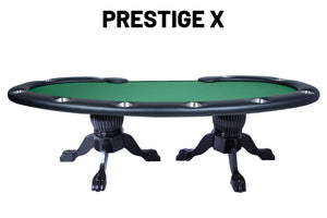 Get ready to dominate the poker world with the Prestige X Poker Table. Measuring 108in, this stunning kidney bean-shaped table exudes luxury and elevates your gaming experience. Hosting 10 players and a dedicated dealer, it's perfect for intense showdowns. Impeccably crafted with sleek curves and a high-end design, the Prestige X creates an atmosphere reminiscent of a high-stakes casino. Don't be fooled by its elegance; this table is built to withstand epic battles. Gather your crew, unleash your poker skills, and bask in the envy of your friends with the Prestige X Poker Table. Prepare for unrivaled poker prestige!