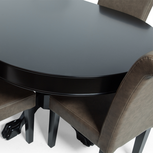 Looking for a bigger table that can do double duty as a handsome dining table? Then look no further! The Elite comfortably accommodates up to 10 players. With the continuous armrest, The Elite is perfect for a game where the deal rotates.