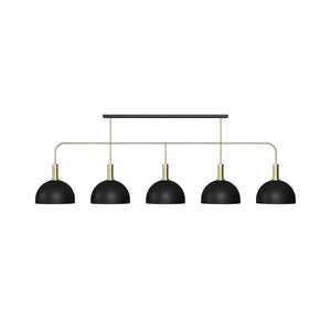 The 5-Shade 80" Metal Pendant Light is an elegant masterpiece, perfect for larger spaces. The matte black metal shades feature a warm orange-gold interior, creating a cozy and inviting glow when illuminated. Designed with spacious areas in mind, this striking fixture looks exceptional above the Prohibition 84" cocktail bar or Prohibition Texas Hold'em table.