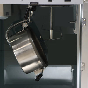Paragon's streamlined Contempo Pop machines have a modern look well suited for many businesses, clubs, bars and homes. The gloss black cabinet has clean, bold graphics, smoked glass side panels and a clear door. These full-featured machines are easy to use and easy to maintain. Each full-featured machine pops delicious, theater-quality popcorn in 3-5 minutes, is easy to use and easy to maintain. This popcorn machine creates 147 one ounce servings per hour for maximum output, and its spring-assisted kettle makes it easy to unload popcorn when it's done cooking. Its two-switch operation lets you effortlessly operate the machine. The aerated warming deck keeps your food warm while catching kernels and smaller bits for easy cleaning.