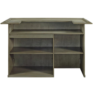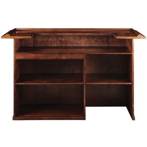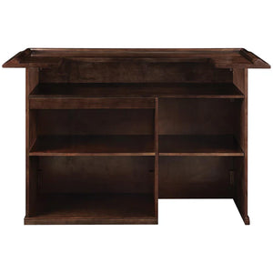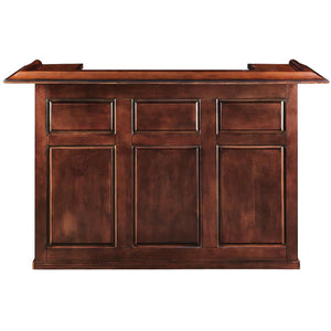 A must-have for any host or hostess, this classic English/Irish pub cocktail bar is destined to be the centerpiece of your entertaining space. Its striking paneled front with raised molding adds a dramatic flair that exudes timeless charm and elegance. Behind the bar, ample shelving provides plenty of room for glassware and spirits, while a removable shelf offers the flexibility to accommodate a mini fridge, ensuring your guests are always served in style. This bar is the perfect blend of functionality and design, making it an essential piece for any home bar setup.
