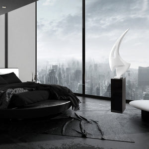 This modern art home decor floor sculpture will allow you to accentuate your style regardless of your chosen interior design. With it's extravagant size, this sculpture resembles a museum-like exhibit. It has a lavish design and size that will leave your guests intrigued. It is a strong focal point and brings beautiful energy into any atmosphere. A wonderful Finesse Decor sculpture that will add a luxurious feel to any space. This gorgeous sculpture is made out of resin and has a solid, non-fading, gorgeous sleek chrome color that gives it the modern art look and includes a white stand to showcase the sculpture as you would in a gallery.