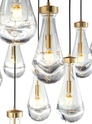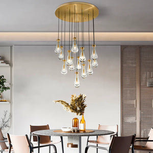 Each pendant is meticulously hand-blown from the finest materials, ensuring exceptional craftsmanship and attention to detail. The pendants gracefully suspend from the canopy, forming a symphony of delicate luminance, each one housing an E12 LED bulb that bathes the surroundings in warm, inviting light.