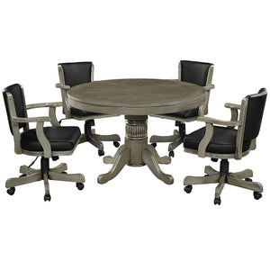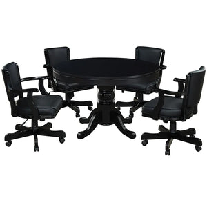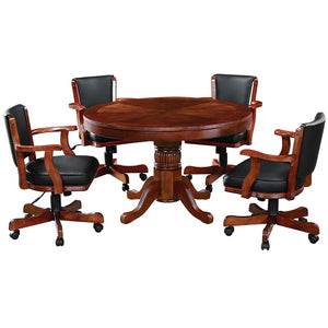 Perfect for everything from Blackjack to Texas Hold 'Em, this 48" round gaming table boasts beautiful solid wood construction with a padded vinyl playing surface. This 3-in-1 table has a flat dinning surface, playing surface and storage underneath for all your gaming needs!