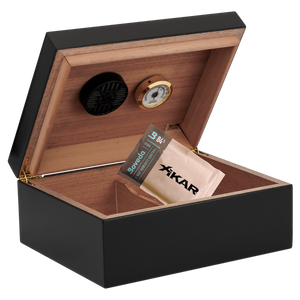 Built with a Spanish cedar divider, the Eclat ensures optimal humidity distribution while allowing you to neatly organize your cigars. It features a reliable hygrometer and humidifier, keeping your collection fresh and ready to enjoy. For added convenience, each unit comes supplied with XIKAR® Boveda® 60G RH seasoning packs—making setup quick, easy, and precise.