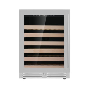 The 24-Inch Under-Counter Low-E Glass Door Single-Zone Wine Cooler is expertly designed to keep your wine collection at its ideal temperature. Powered by an Embraco Inverter Compressor, it delivers ultra-quiet, energy-efficient cooling, making it a dependable addition to any home or office.