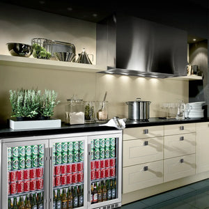 The 53" 3-Door Heated Glass Undercounter Beverage Cooler combines sleek, durable stainless steel construction with cutting-edge cooling technology, making it perfect for home or commercial use. Powered by the Carel Controller, it ensures precise temperature management while maximizing energy efficiency.