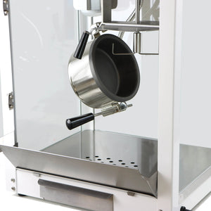 Paragon's streamlined Modpop Popcorn machines have a modern look well suited for many businesses, clubs, bars and homes. The gloss white cabinet has clean, bold graphics, glass side panels and a clear door. These full-featured machines are easy to use and easy to maintain. Each full-featured machine pops delicious, theater-quality popcorn in 3-5 minutes. This popcorn machine creates 92 one ounce servings per hour for maximum output, and its spring-assisted kettle makes it easy to unload popcorn when it's done cooking. Its two-switch operation lets you effortlessly operate the machine. The aerated warming deck keeps your food warm while catching kernels and smaller bits for easy cleaning.
