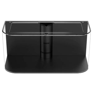 AQUA VIM® luxury glass aquariums come with built-in three-level intake overflow boxes (larger tank sizes have 2 overflows) and predrilled 1.5 drain and 1 return holes for plumbing. Tanks are top-braced with glass rims for maximum structural integrity. The drilled feeder hole in the brace of the tank allows for accessibility and convenient feeding. For ease of setup, dual openings in the back corners of the brace allow for customization and wiring of internal tank accessories such as air pumps, heaters, and wave makers. Aquariums come with a black vinyl background attached.