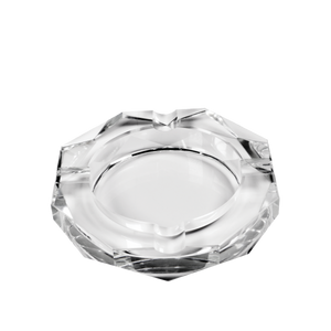 Quality Importers Crystal Cigar Ashtray. This ashtray is made from K9 crystal and is supplied with a custom gift box. Available in round or square design. The square design is available in two finishes, a semi-transparent black or a unique tobacco leaf art design.