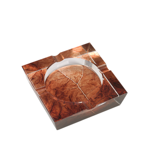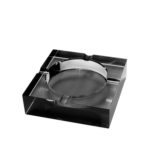 - Square ashtray dimensions are: 5 4/5" w x 5 4/5" l x 1 ⅔" h and available in semi-transparent black and tobacco leaf design