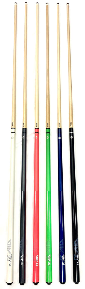 Elevate your billiards game to new heights with RAM Game Room's RAID CS Series billiards cues (By Falcon Cues). Crafted with precision and expertise, these cues are engineered to enhance your performance and accuracy on the table. Each cue features a premium Canadian maple shaft, renowned for its durability and superior feel, ensuring a smooth and consistent stroke every time.