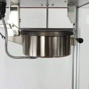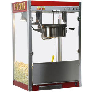 Styled just like the poppers you see at the local movie house. The Theater Pop line has a bright cabinet and classic graphics that fit almost any décor. Each full-featured machine pops delicious, theater-quality popcorn in 3-5 minutes, is easy to use and easy to maintain. This popcorn machine creates 221 one ounce servings per hour for maximum output, and its spring-assisted kettle makes it easy to unload popcorn when it's done cooking. Its four-switch operation lets you effortlessly set this popcorn popper up, and the kettle "ready" lights let you know when you can add ingredients for cooking. The poppers top and bottom are colored red to grab the attention of your customers, and thanks to its aerated warming deck, this popcorn machine will keep your food warm while catching kernels and smaller bits for easy cleaning.