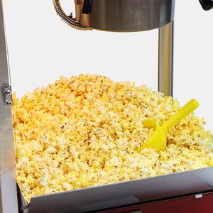 Styled just like the poppers you see at the local movie house. The Theater Pop line has a bright cabinet and classic graphics that fit almost any décor. Each full-featured machine pops delicious, theater-quality popcorn in 3-5 minutes, is easy to use and easy to maintain. This popcorn machine creates 147 one ounce servings per hour for maximum output, and its spring-assisted kettle makes it easy to unload popcorn when it's done cooking. Its two-switch operation lets you effortlessly operate the machine. The aerated warming deck keeps your food warm while catching kernels and smaller bits for easy cleaning.