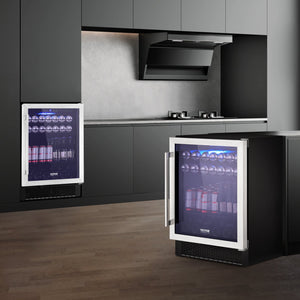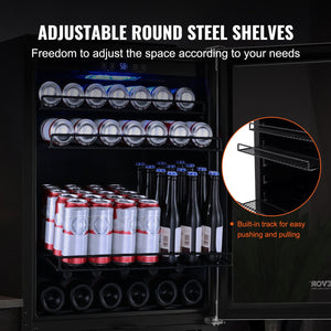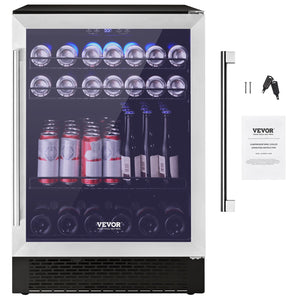 VEVOR 24" Beverage Refrigerator, 154 Cans Under Counter Built-in or Freestanding Beer Cooler Fridge, Blue LED Light, Child Lock, Adjustable Shelves, ETL