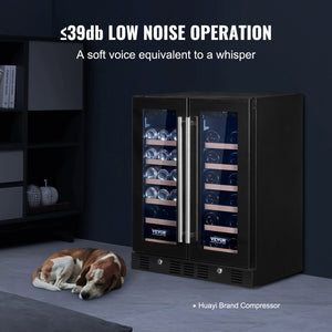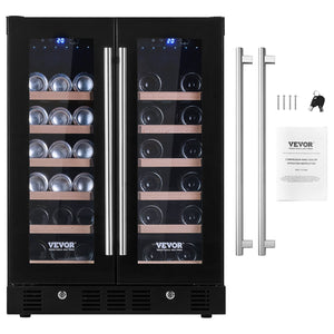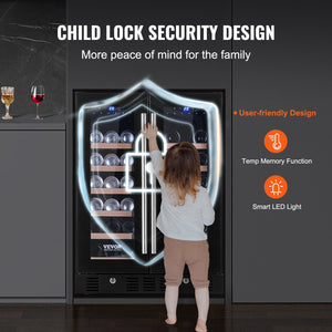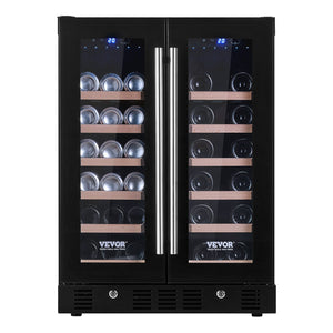 VEVOR 24" Wine and Beverage Refrigerator, 78 Cans and 20 Bottles Dual Zone Tempered Glass Door, Digital Temper Control, Blue LED Light, Child Lock, Built-in or Freestanding, ETL