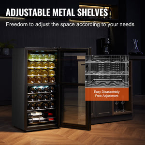 VEVOR 32-Bottle Wine Cooler Dual Zone Freestanding Refrigerator with LED Light