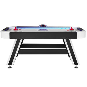 - LED Lighting Feature: Experience a full-fledged gaming ambiance with the 72" air-powered hockey table, equipped with dazzling LED light strips. Perfect for a group of 4, the table's radiant lights elevate the gameplay when room lights are turned off, making the game even more thrilling.