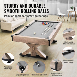VEVOR Billiards Table Combo Set, 7ft 3-in-1 Multi Game Table with Dining, Pool, and Tennis Table, Includes Full Set of Accessories, Wood Color with Grey Cloth, Perfect for Family Game Room Kids Adults